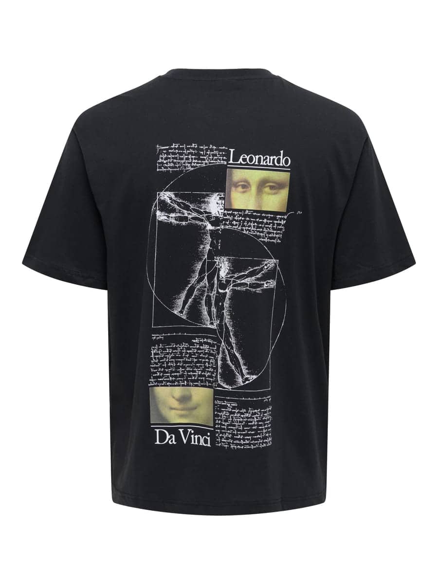 Only and Sons Ανδρικό T-Shirt 22036580 Jet black με Τύπωμα Mona Lisa στη Πλάτη